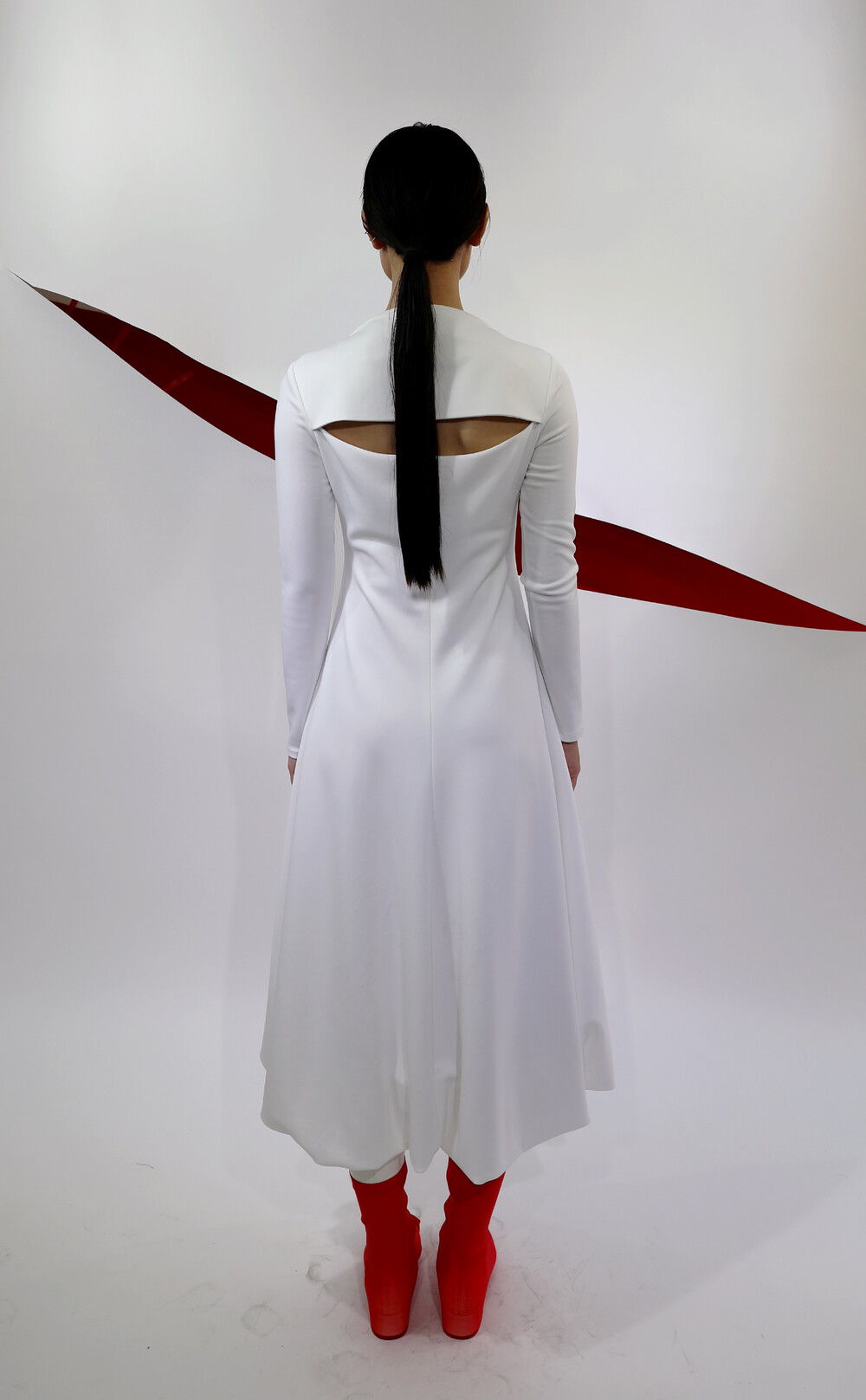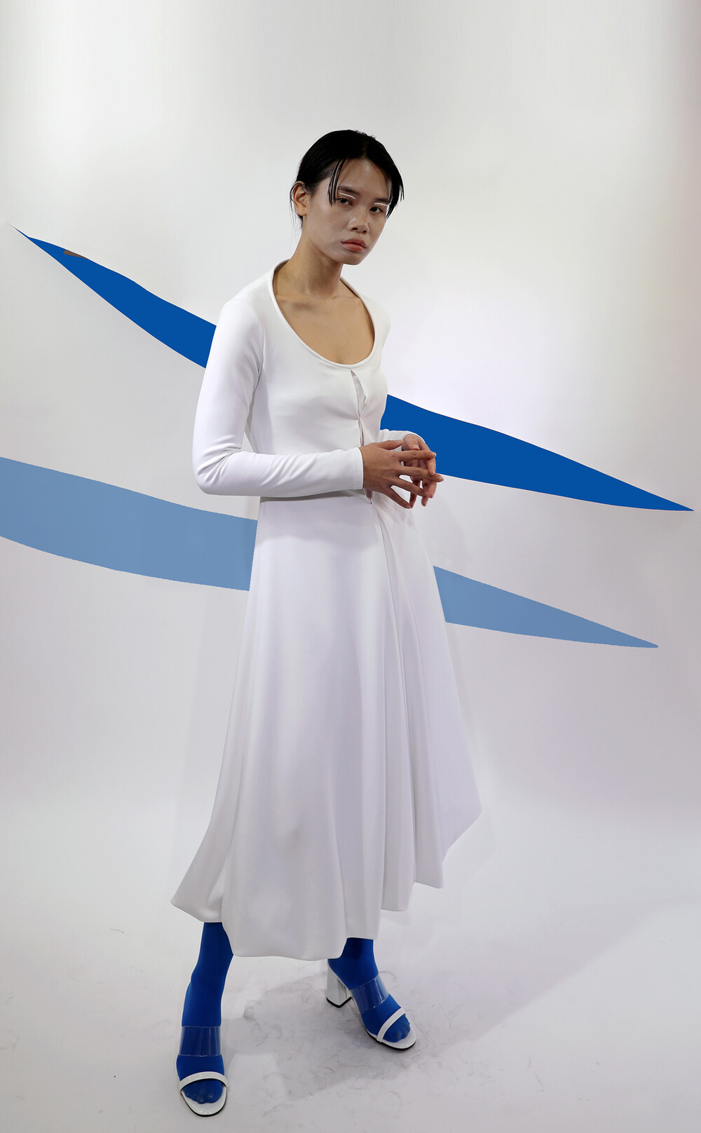 홀(구멍)-네크라인 터킹 드레스_화이트